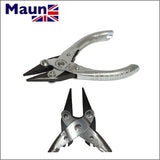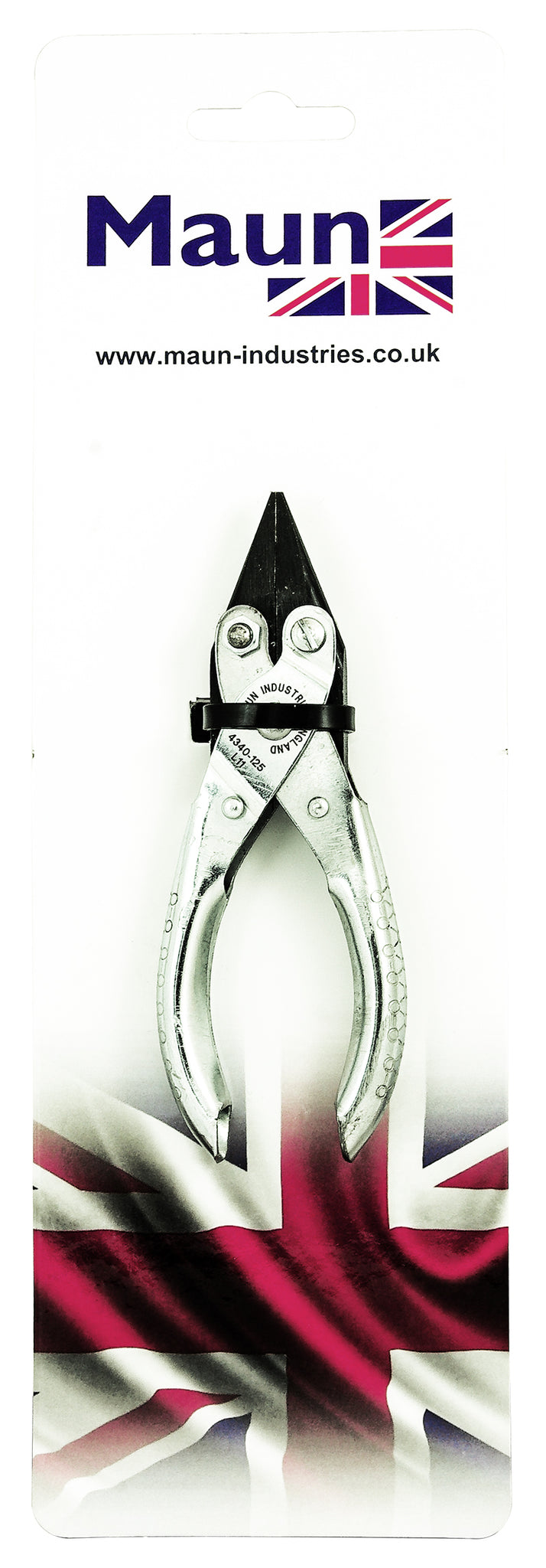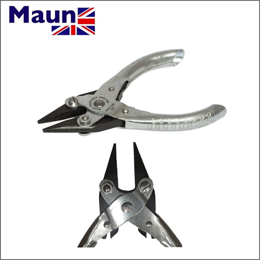 | • Maun Snipe Nose Plier with Smooth Jaws : This plier has smooth jaws to prevent marking on your work piece with a jaw opening of 10 mm, a length of 125 mm / 5" and is made from steel. |