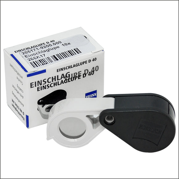 | • Zeiss 10X Triplet Loupe : The 10x achromatic triplet folding pocket loupe is the best among all loupes. • The GIA and CIBJO specify a high quality 10-power aplanatic achromatic loupe for grading the color, clarity and purity of diamonds and this 13mm (1/2") diameter folding loupe exceeds every requirement for sharp, dispersion-free viewing. • Its sealed multiple-lens system comes with standard Zeiss T multi-layer anti-reflective coating, which both minimizes distracting environmental glare and enhances the clarity of the image seen through the lens. • The tough, reinforced polymer shell is much lighter than a metal frame, but provides better shock protection for the lenses in the event the loupe is dropped. • Optically effective diameter: 13mm • Refractive power: 40 dpt • Magnification for reference distance of 0.25m (D/4): 10X |